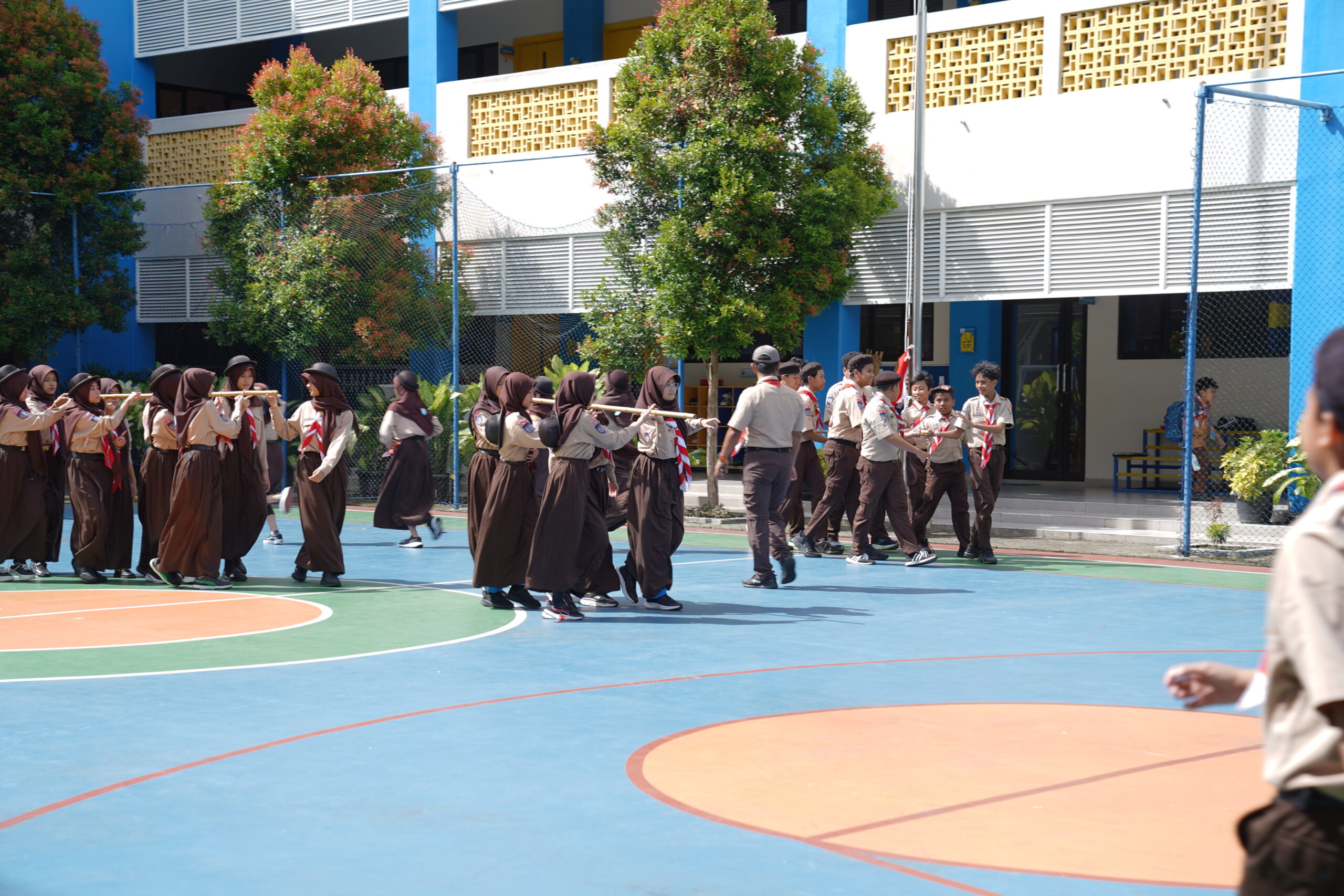 Kegiatan pramuka di JH GIS 3 Jogja dirancang dengan beragam aktivitas dan materi sebagai sarana pembekalan siswa terhadap keterampilan dan nilai-nilai penting untuk kehidupan.