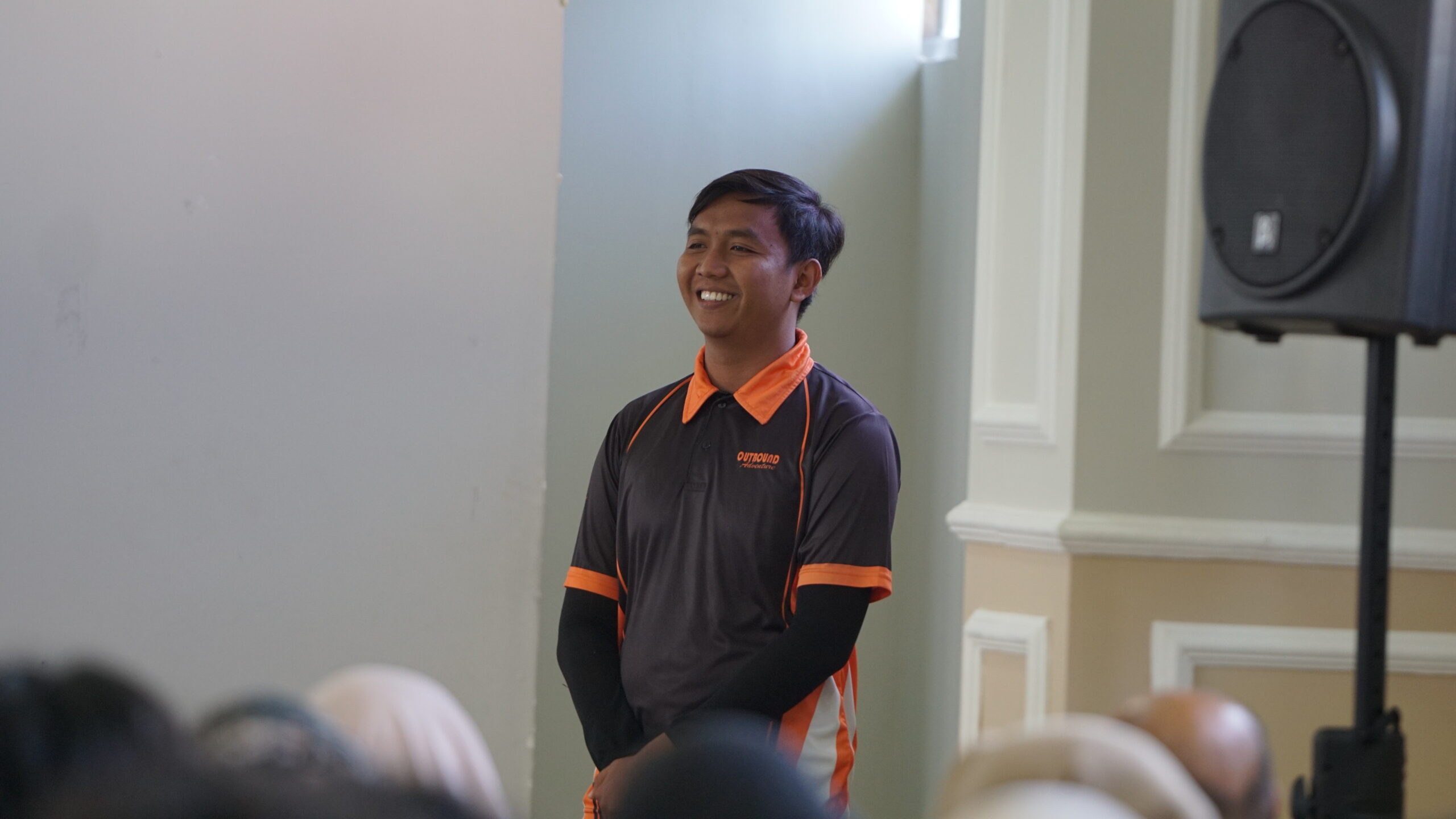 Dari lapangan, peserta AMT diajak menuju ke aula di lantai 3. Di sana, mereka duduk membentuk lingkaran dan memainkan game pertama. “Body percussion,” kata trainer menyebutkan nama game tersebut.